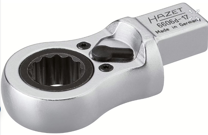 A HAZET 6606D-17 egy professzionális, racsnis betétes csillagkulcs, amelyet elsősorban nyomatékkulcsokhoz terveztek. A 14×18 mm-es befogásnak köszönhetően kompatibilis több HAZET nyomatékkulccsal, így ideális precíz meghúzási feladatokhoz.