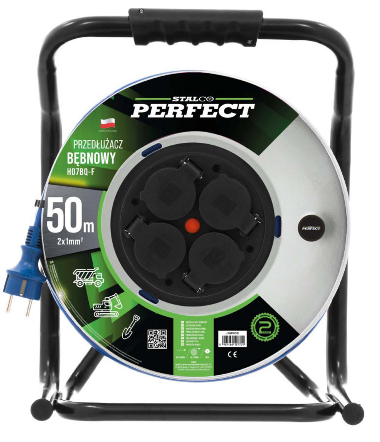 Hosszabbító kábeldob 40M, HEAVY LINE IP-44 4x2p+Z, 16A, 3680W, 3x2,5mm H05RR-F, STALCO PERFECT