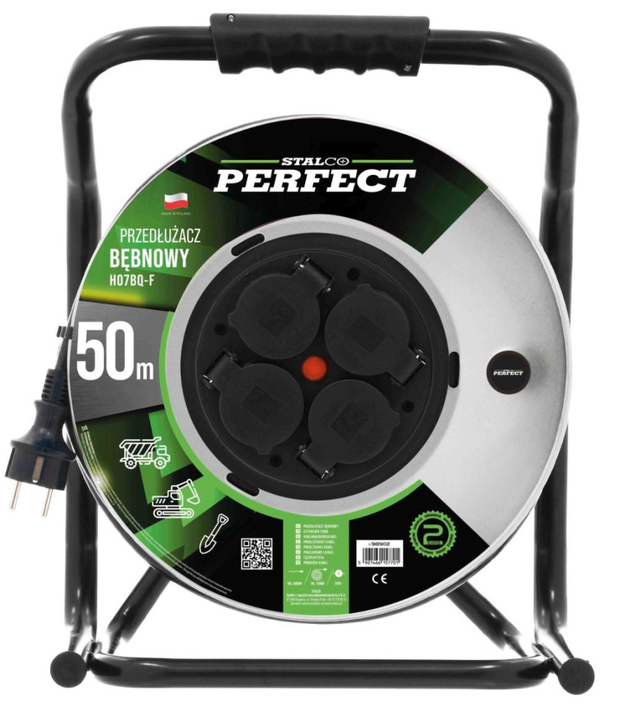 Hosszabbító kábeldob 50M, HEAVY LINE IP-44 4x2p+Z, 16A, 3680W, 3x2,5mm H05RR-F, STALCO PERFECT